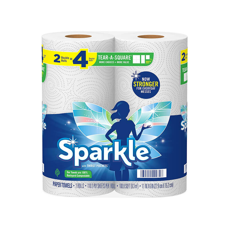- Sparkle Tear-A-Square Paper Towels are now stronger for everyday messes at a value that’s just right for your budget.