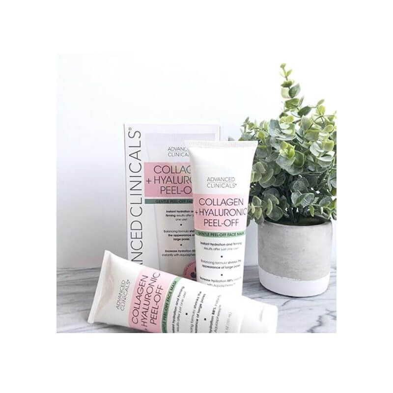 Advanced Clinicals Collagen + Hyaluronic Acid Anti-Aging Peel-Off Face Mask Hydrating, Tightening, & Firming Vegan Peel Off Face Masks Smooth Wrinkles & Pores, & Even Skin Tone (3.4 Fl Oz)