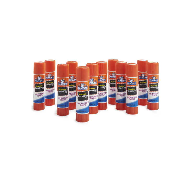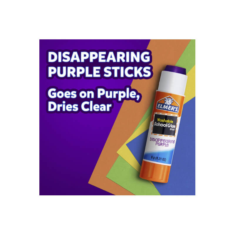 - Getting creative is easy with these glue sticks, which go on purple and dry clear to help you clearly see where adhesive has been placed. The washable, nontoxic formula is safe for kids and bonds to paper, cardboard and many other surfaces.