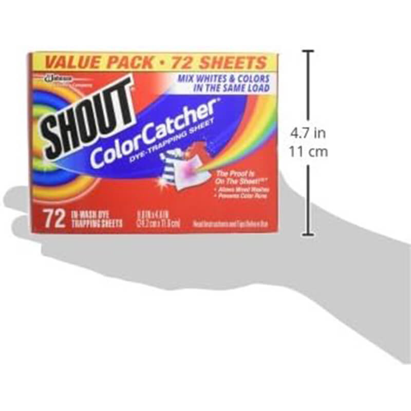 Shout Color Catcher sheets absorb and trap loose dyes in your wash water, protecting clothes against color bleeds and helping preserve original colors. Color protector sheets go straight into the wash.