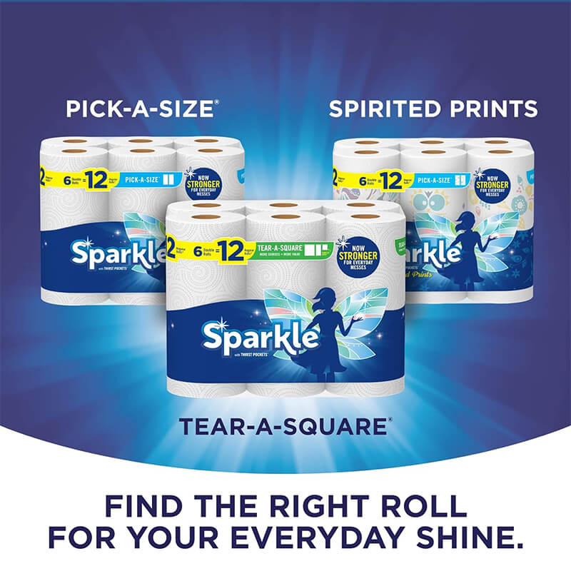 - Sparkle Tear-A-Square Paper Towels are now stronger for everyday messes at a value that’s just right for your budget.